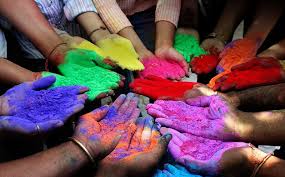 | There are many stories associated with the origin of Holi. For some Holi marks the day when devotees of lord Vishnu, Bhakt Prahlad who was seated on the lap of demoness Holika was saved from the effect of the fire by God and instead the demoness got burnt. For others the festivals relate to the death of demon Putana at the hands of lord Krishna while some associate the festival with the worship of Karma, God of pleasure and destiny. | |